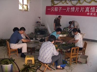??????? 近幾年,端午前,利達公司都會想到那些遠離家鄉(xiāng)的單身大學生員工,并提前為他們準備一份端午節(jié)慰問品。這份慰問品主要是粽子還有咸鴨蛋、雞蛋。粽子是哪里來的?利達公司委托中光社區(qū)居委會幫助制作的。