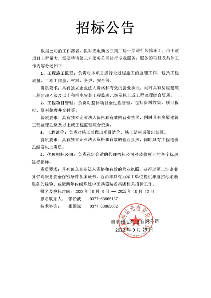 光電新區(qū)三期廠房一層裝修施工的招標公告