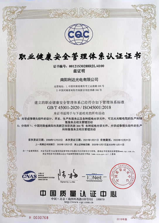 職業(yè)健康安全管理體系認(rèn)證證書(shū)(中文)