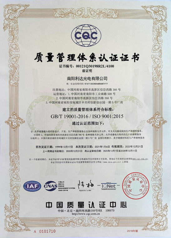 質(zhì)量管理體系認(rèn)證證書(shū)(中文)
